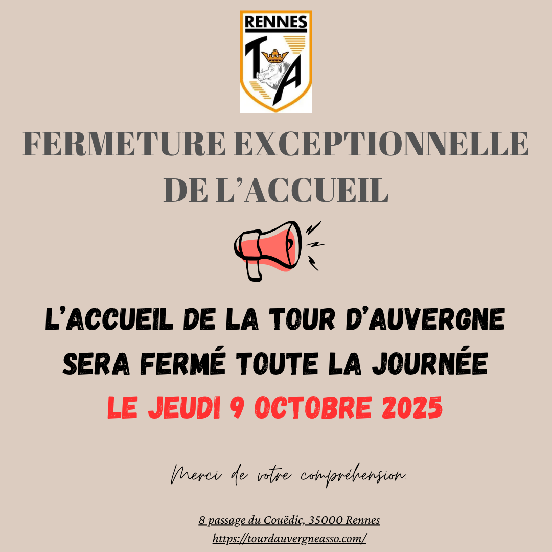Notez bien dans vos agendas : l’accueil sera fermé ce Jeudi 9 octobre 2025.