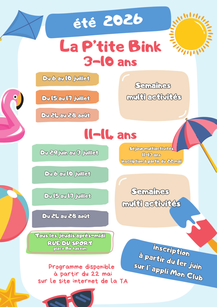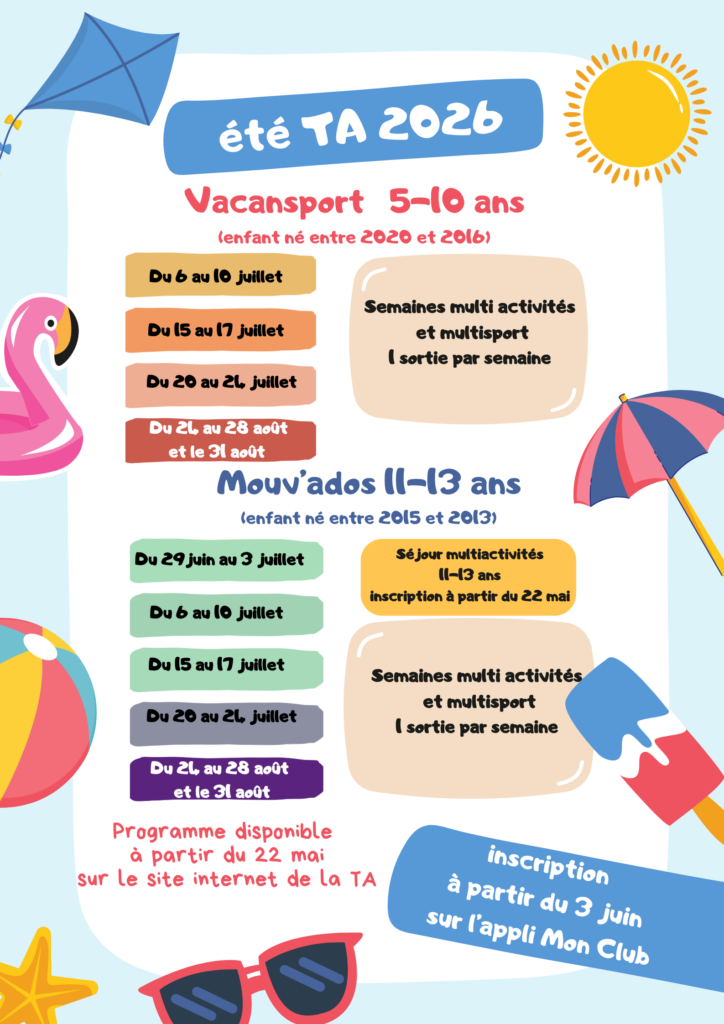 Retrouvez les dates et quelques informations utiles concernant l’accueil de loisirs de cet été 2026 à la TA.