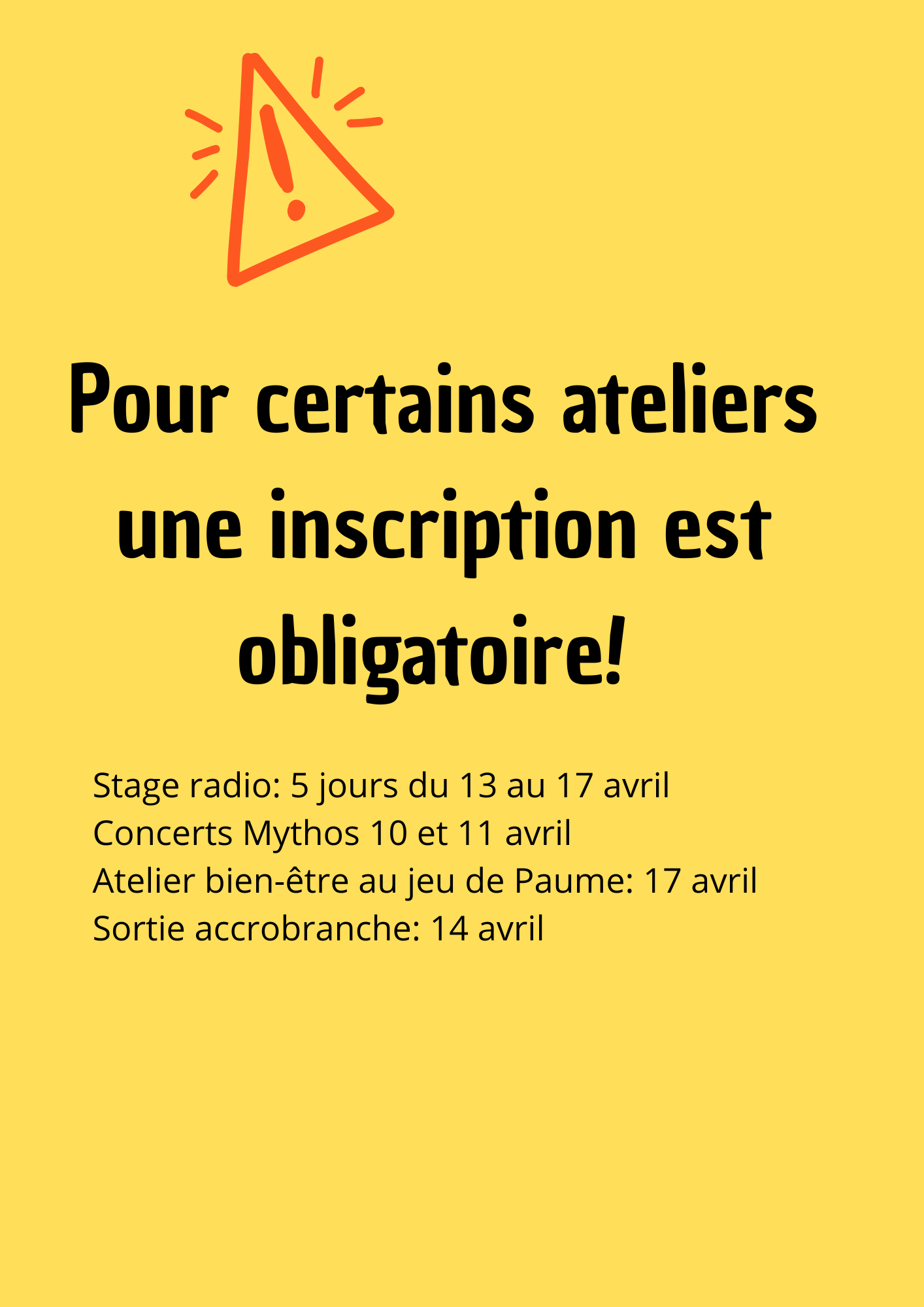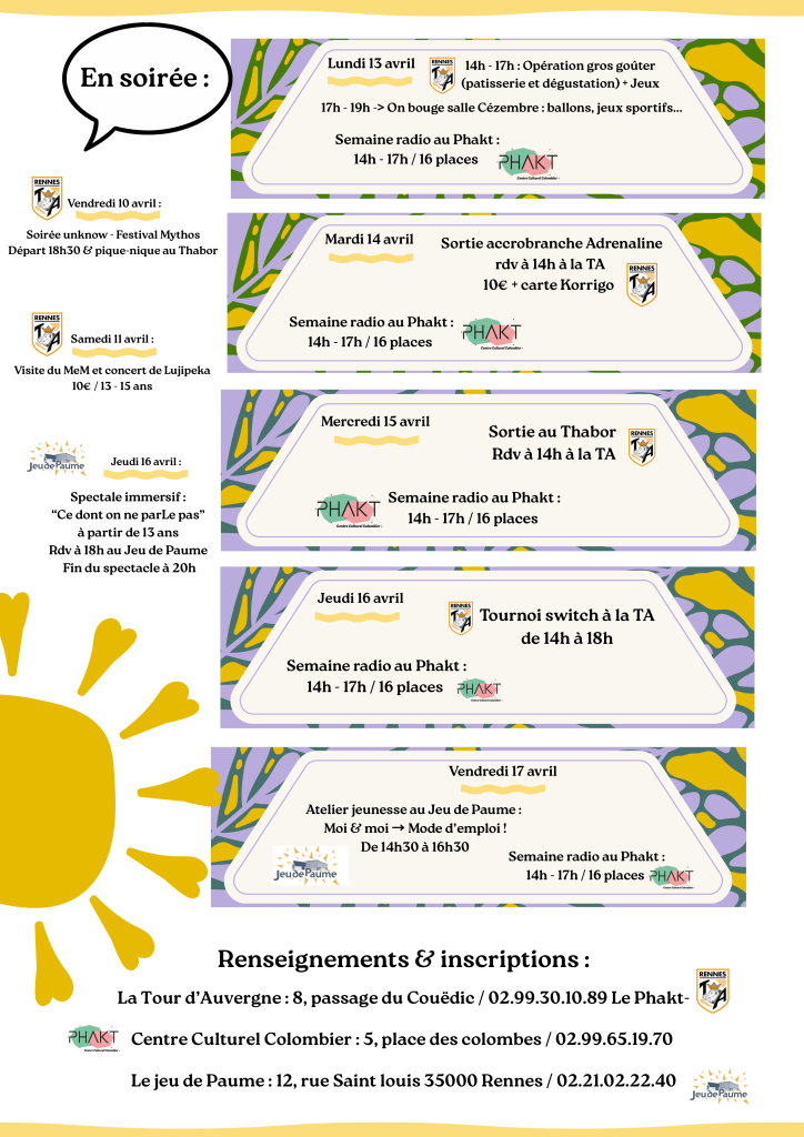 Retrouvez le programme de la semaines de vacances TAJeunesse du 13 au 17 avril prochain.