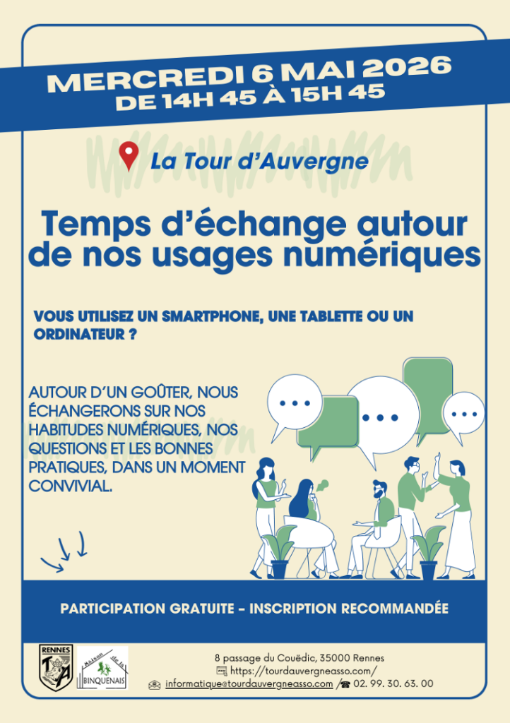 La Tour d’Auvergne vous propose un temps d’échange convivial pour discuter de nos usages du numérique au quotidien.